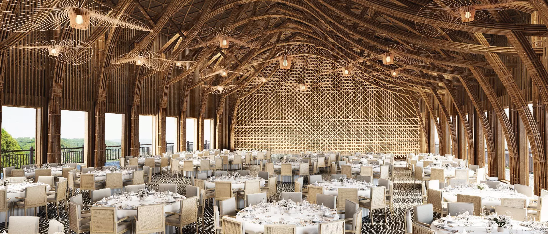 Tự hào sở hữu khu vực tổ chức hội nghị có thiết kế độc đáo với kiến trúc bằng tre, được trang bị công nghệ tiên tiến, đảm bảo sự kiện được diễn ra suôn sẻ. Phòng tiệc lớn với thiết kế rộng 420 m2 và không gian linh hoạt của chúng tôi có thể phục vụ nhiều lựa chọn tổ chức sự kiện khác nhau lên đến 350 khách.
